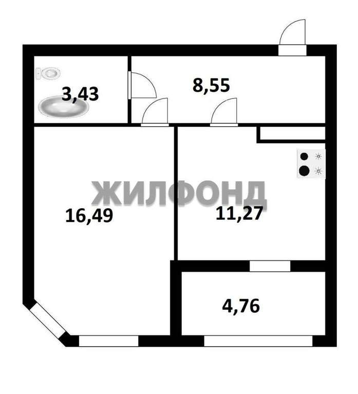 Жилая площадь- 16,49 кв. м. - уютная комната для отдыха и сна.